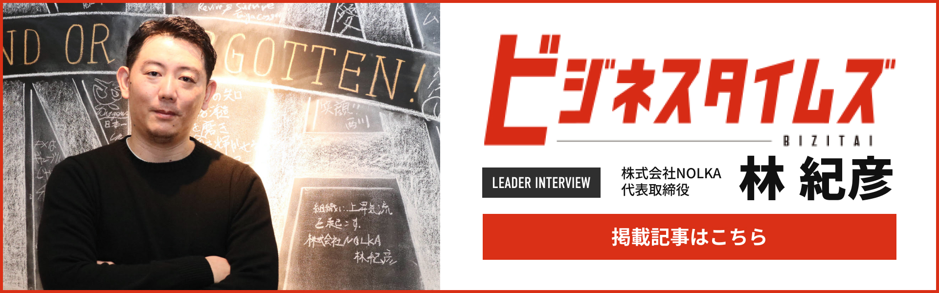 2025.11.10 【掲載情報】株式会社NOLKA 代表・林紀彦のインタビューが「ビジネスタイムズ」に掲載されました 株式会社NOLKA 代表取締役 林紀彦のインタビュー記事が、経営者・ビジネスリーダー向けメディア「ビジネスタイムズ」に掲載されました。本記事では、NOLKA創業の背景や「人と組織の未来をデザインする」というビジョン、コンサルティングとデザインを掛け合わせた独自の取り組みについて語っています。ぜひ以下よりご覧ください。